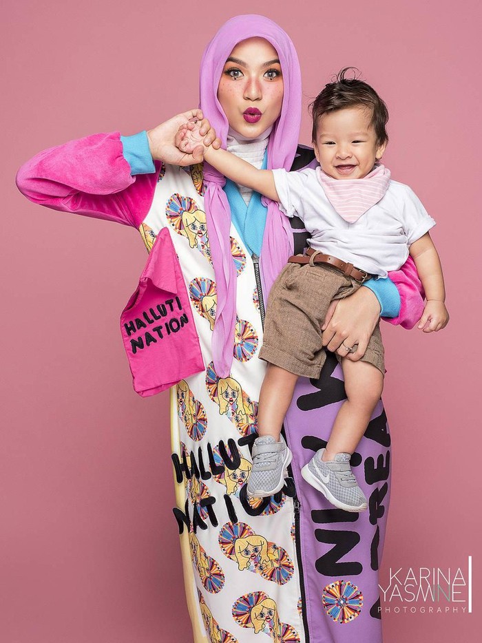 Ada pula adik Zaskia Adya Mecca yang berhijab, Marsha Natika, yang mengenakn baju panjang print bernuansa ungu dan pink. Pulasan makeup juga dibuat seperti boneka. Selain freckles, tambahan titik di bawah mata menbuat penampilannya menarik perhatian.