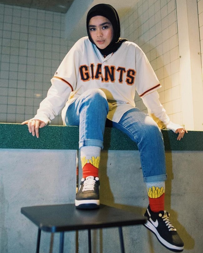 Seperti Sivia, Intan juga kerap memadukan oversized jacket, sepatu sneakers, dan kaos panjang. Ia hampir tidak pernah memakai busana feminin seperti motif floral atau warna pastel.