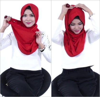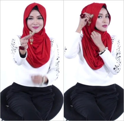 Kreasi Hijab dengan Bros Menggunakan Round Shawl