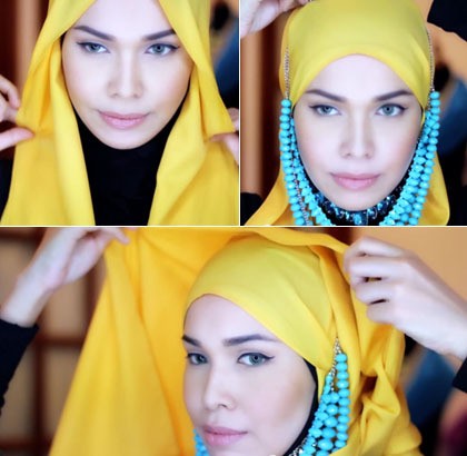 Tutorial Hijab dengan Kalung Terinspirasi Gaya Putri Arab