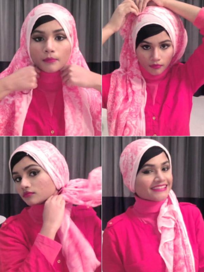 Wanita di era 1960-an identik dengan gaya rambut panjang belah samping. Anda yang sudah berjilbab juga bisa menerapkan gaya wanita '60-an dengan tutorial hijab belah samping seperti yang dikreasikan oleh hijabers asal Bangladesh, Aydha Mehnaz. Cukup mengenakan ciput belah samping lalu lilitkan scarf panjang dengan cara yang simpel. Seperti apa penerapannya? Simak langkah-langkahnya di sini: