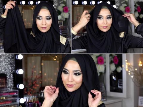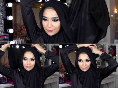 Ambil scarf panjang warna hitam atau cokelat tua. Letakkan di atas kepala dengan kedua sisi sama panjang. Namun sebelumnya pastikan sudah menggunakan ciput agar kerudung tidak berantakan. Lipat sedikit bagian atasnya hanya sebagai pemanis.