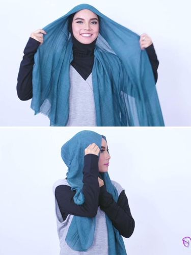 Siapkan pashmina panjang warna cerah agar tidak mudah gerah saat beraktivitas di luar ruangan. Tak lupa pakai ciput, bisa yang menutup sampai leher atau tidak. Ciput berguna untuk menjaga jilbab tetap rapi. Lipat sedikit bagian depan pashmina dan letakkan di atas kepala dengan sisi kanan lebih pendek. Sematkan jarum pentul di sisi kanan sejajar dengan alis. Lakukan hal serupa pada sisi yang kiri.