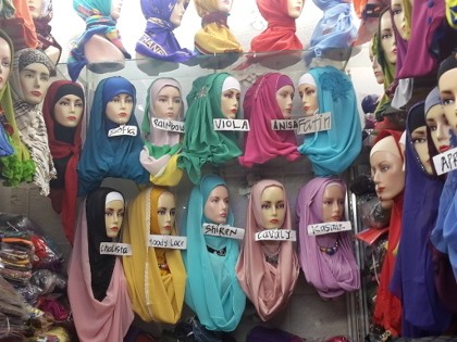 Saat Wolipop menyambangi pusat grosir Tanah Abang blok A, Selasa (30/6/2015), aneka ragam hijab dipajang di depan toko untuk menarik para pengunjung. Mulai dari jilbab ala Turki, syar'i, pashmina dari bahan cerutti, dan lain sebagainya.