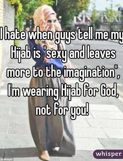 Muslimah lainnya menyebutkan bahwa mereka tidak menyukai pria-pria yang menyebut hijabnya seksi. Sementara wanita lainnya mengaku merasa lebih percaya diri memakai jilbab daripada melepasnya. Banyak pula yang menyebutkan bahwa mereka sering diabaikan karena mengenakan jilbab.