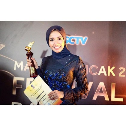 "Assalamualaikum, terima kasih atas support yang luar biasa untuk karier saya. Dan saya ingin mengklarifikasi untuk fashion yang saya pakai pada acara FFB 2015 sebenarnya saya mengenakan manset dalam. Sama seperti yang saya kenakan di film yang membawa saya memenangkan piala ini, 'Surga yang Tak Dirindukan'. Terima kasih kepada seluruh tim, keluarga, sahabat, fans dan FestivalFilm Bandung. Salam hormat saya dan semoga karya-karya saya berikutnya dapat diterima dengan baik. Saya mengajak semua teman-teman untuk tidak cepat menghakimi apalagi mem-bully karena biar bagaimanapun kami semua manusia, tempatnya salah, dan lupa. Wassalamualaikum with love, LCB," tulisnya.
