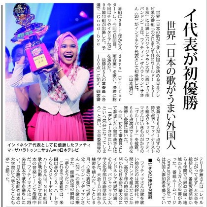 "Kaget banget soalnya ikutan itu juga cuma iseng. Bisa sampai 12 besar saja sudah alhamdulillah banget eh ini jadi pemenang, nggak nyangka. Juri bilang bahasa Jepang aku indah ngalahin penyanyi aslinya terus ada juri produser yang tawari aku debut," papar wanita mahasiswi yang sudah bisa berbahasa Jepang sejak duduk di bangku SMA itu.