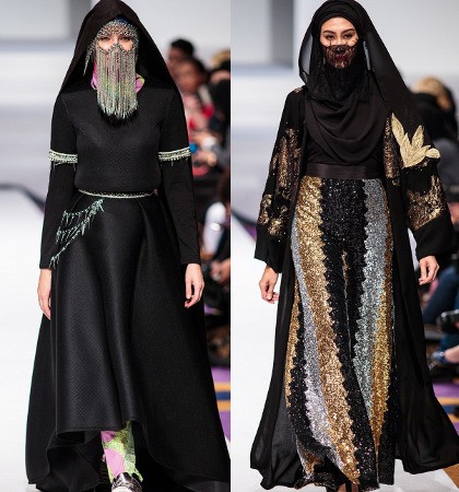 Seperti pada karya yang dipamerkan oleh desainer Rozita Che Wan dengan labelnya Padusi. Abaya bernuansa glamour warna hitam dengan taburan sequin emas-silver memberikan kesan mewah tapi klasik.