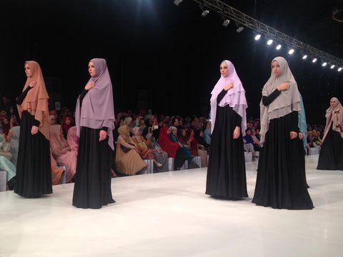 "Khimar dari kita bisa dikreasikan jadi berbagai macam gaya, tapi tetap menutup semua lekuk tubuh perempuan. Bagian depannya menutup dada dan belakang panjang sampai bokong," tambah Merry.