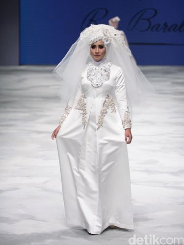 Rangkaian busana pengantin muslim ikut meramaikan Indonesia Fashion Week 2016 akhir pekan kemarin. Sejumlah desainer pun menggandeng selebriti untuk menampilkan busana yang mewah dan glamour ini. Di antara yang terlihat dalam balutan busana pengantin muslim adalah Poppy Bunga dan Angel Lelga. Inilah pesona para selebriti saat menjadi model busana pengantin muslim.
