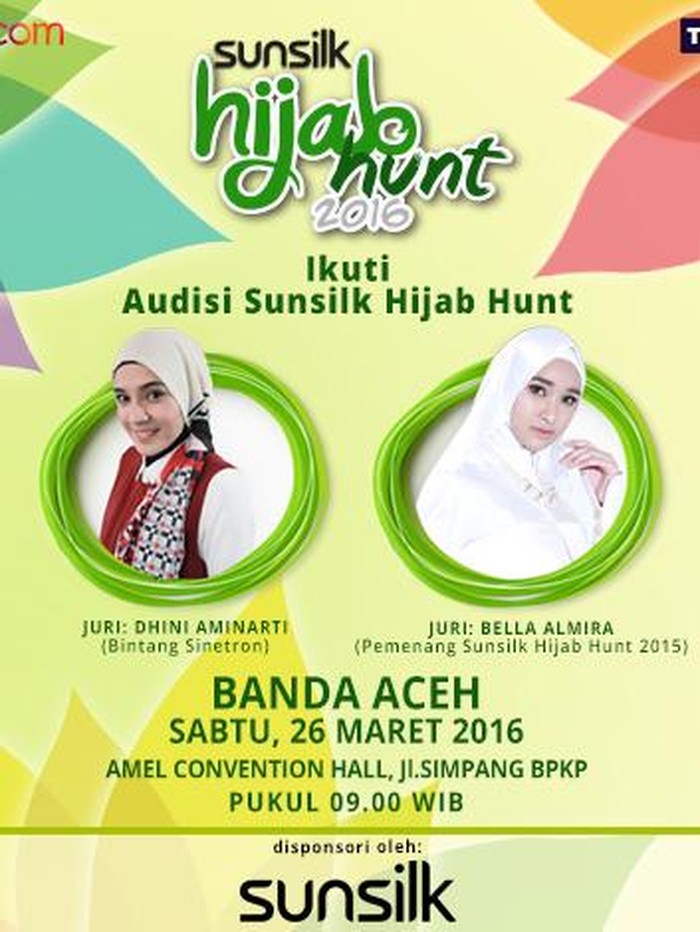 Audisi Sunsilk Hijab Hunt 2016 digelar di Amel Convention Hall, Jl Simpang BPKP, Banda Aceh. Audisi akan berlangsung mulai pukul 09.00 WIB.