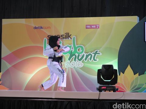 Atlet nasional Aceh, Safira Dirayanti, yang lolos tahap kedua audisi Sunsilk Hijab Hunt 2016 tampil memukau penonton dan juri saat melakukan gerakan bela diri Tarung Derajat. Seperti apa aksinya?