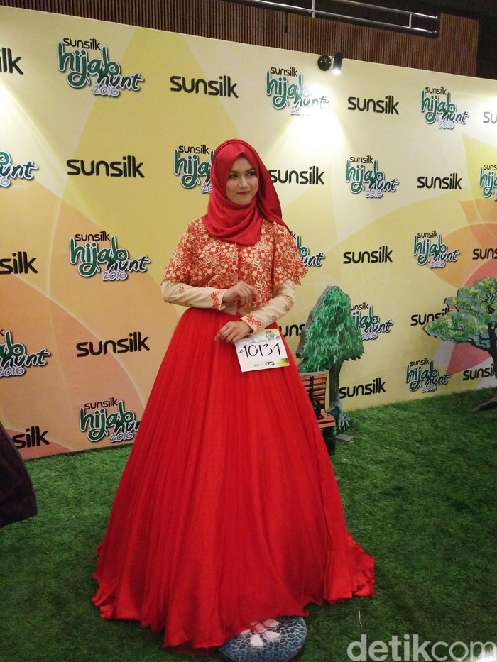 Di antara ratusan peserta audisi Sunsilk Hijab Hunt 2016 di Bandung, ada satu peserta yang tampil memikat dengan gaun lebar berwarna merah. Namanya Dessy Qudsyiati Qolby (22 tahun) asal Cileunyi, Kabupaten Bandung.