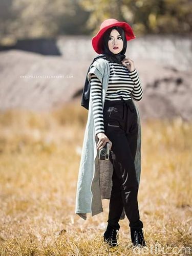Boyish dan minimalis mencirikan gaya personal Adini Altaria yang berhasil menjadi pemenang Hijab Hunt OOTD minggu ini. Sesuai dengan karakter personalnya, wanita 23 tahun itu tampil boyish dalam pilihan warna serba hitam mulai dari kerudung, celana, atasan, hingga sepatunya. Namun ia ingin memberikan sedikit sentuhan feminin dengan tambahan vest beraksen tali agar terlihat lebih manis. Gaya busananya tampak stylish, fotonya pun bagus, tidak blur maupun pecah. (aln/eny)