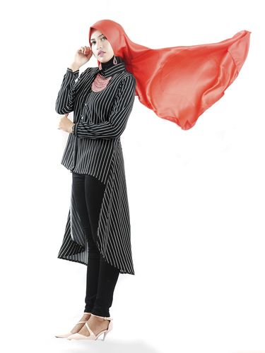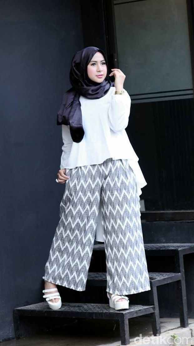 Wanita 20 tahun asal Jakarta, Majda. Tampil modis dalam setelan celana palazzo dan blouse berpotongan mullet. Celana yang sudah bercorak dipadukan dengan atasan putih off white akan tampak kontras tapi dinamis. Celana berpotongan lebar bisa membuat kaki terkesan lebih jenjang. Ia pun berusaha menyeimbangkan penampilan dengan pemakaian pashmina hitam. Majda menjadi salah satu pemenang Hijab Hunt OOTD minggu terakhir ini.