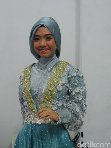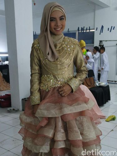 "Bagus banget gaunnya mewah dan agak berat dipakainya. Aku pakai warna gold dan ada rantai-rantainya. Kata teman-teman gaunnya 'aku banget'," cerita wanita yang pandai menari itu.