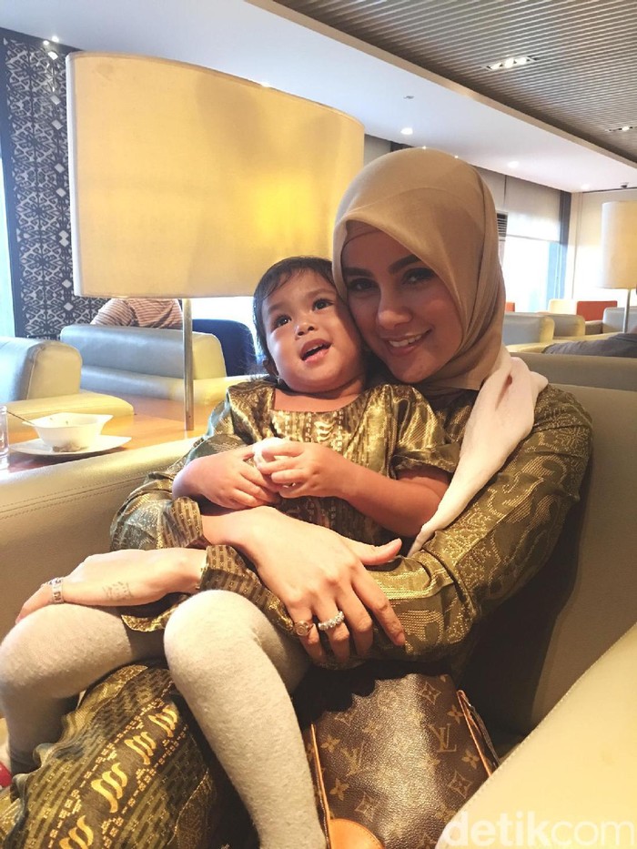 Olla Ramlan berangkat ibadah umrah pada Rabu (1/2/2017), bersama keluarga. Didampingi sang suami, Mohammad Aufar Hutapea, dan buah hati kecilnya, Aleena Naira Hana Hutapea, Olla rencananya akan beribadah selama sembilan hari di Tanah Suci.