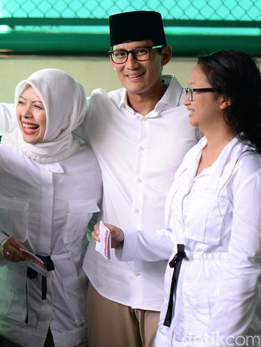 Cawagub nomor urut 3 itu didampingi sang istri Nur Asia dan anak perempuannya Amyra Atheefa Uno. Mereka kompak menggunakan busana serba putih. Nur pun tampak cantik dengan jilbab putih yang simpel. Seperti apa penampilan Nur ketika akan menggunakan hak suaranya untuk pilkada DKI putaran kedua? Berikut foto-fotonya:
