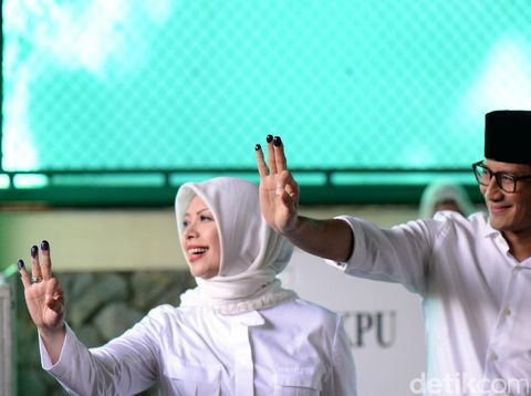 Istri Sandiaga Uno Cantik Berhijab Putih Saat Nyoblos di Pilkada DKI
