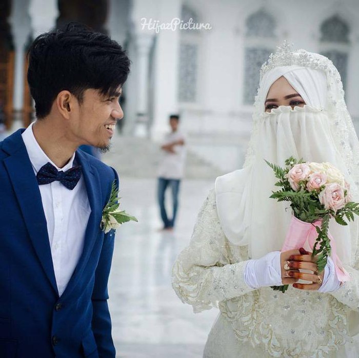 Qari yang juga dikenal sebagai imam lulusan Institut Teknologi Bandung (ITB) itu memilih berfoto di masjid yang menjadi ikon kota Banda Aceh yaitu Masjid Raya Baiturrahman. Dari foto yang diunggahnya ke Instagram pada Jumat (7/7/2017) tampak, Muzammil dan Sonia berdiri bersebelahan dan saling menatap dengan senyum bahagia di bibir mereka.