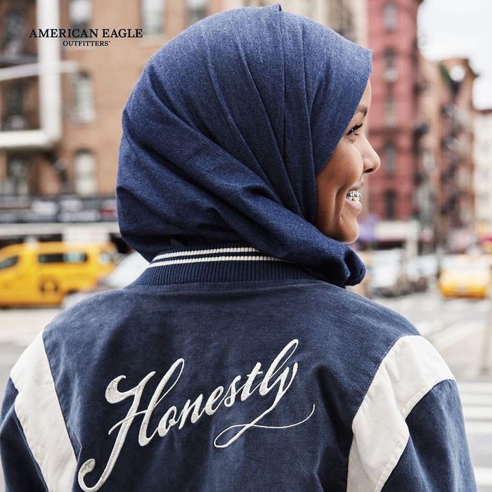 American Eagle akhir-akhir ini menjadi perbincangan karena menampilkan model berhijab dan merilis koleksi hijab denim untuk musim dingin 2017. American Eagle menampilkan model berhijab yang sedang naik daun Halima Aden.
