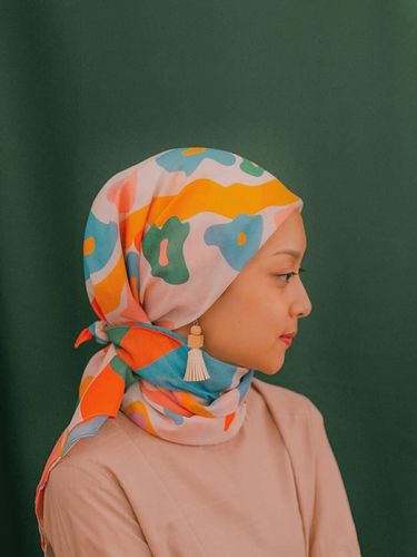 Hijab segi empat motif yang sedang hits sekarang ini bisa kamu pakai dengan cara berbeda. Khususnya untuk kamu yang bekerja di kantor kreatif, tak ada salahnya memilih gaya hijab nyentrik dengan tambahan aksesori seperti anting.