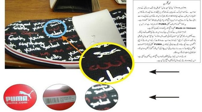 Menurut pihak Nike, tulisan itu adalah 'Air' dengan kreasi font yang dibuat seperti tulisan Arab. Karena reaksi netizen yang ramai, Nike memutuskan menarik produk tersebut dari peredaran.