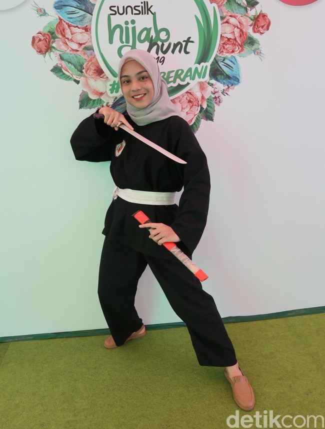 Adinda Putri Kartika memakai baju pencak silat hitam dan membawa golok di tangannya. Mahasiswi jurusan olahraga itu akan menunjukkan seni tunggal pencak silat. "Saya juga dibantu teman untuk melakukan tendangan nanti," ujarnya.