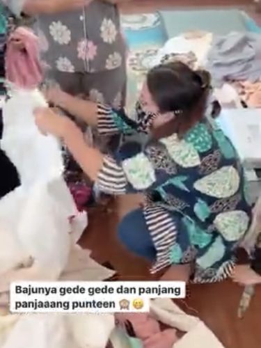 Dian Pelangi bagi-bagi baju untuk karyawan yang tidak mudik. Foto: Instagram Story @dianpelangi |
