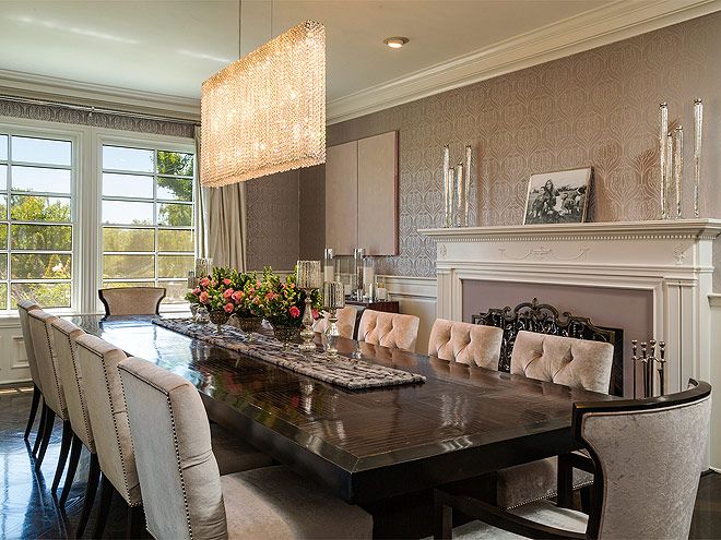 Ruang makan didesain dengan nuansa modern dengan meja makan besar yang mampu menampung delapan orang. Di atas meja makan itu terdapat lampu kristal serta perapian pada dindingnya.