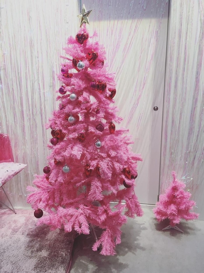 Pohon Natal berwarna pink sedang digandrungi di Inggris. (Foto: Instagram)