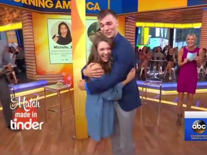 Josh Avsec dan Michelle Arendas, akhirnya bertemu langsung setelah tiga tahun hanya chat online di Tinder. Keduanya diundang sebagai bintang tamu di acara Good Morning America yang disiarkan abc. Pertemuan manis ini pun membuat netizen ikut berbahagia.