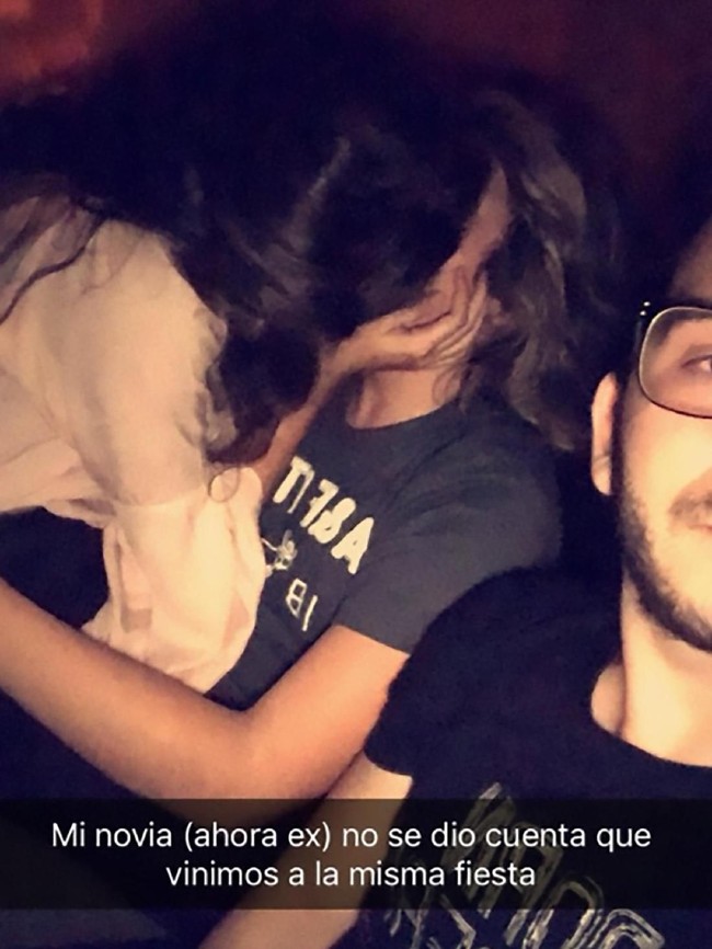 Mariano menuliskan caption di postingan foto Twitter-nya dalam bahasa Argentina, "Pacarku (sekarang mantan pacar) nggak sadar kalau kami datang ke pesta yang sama."