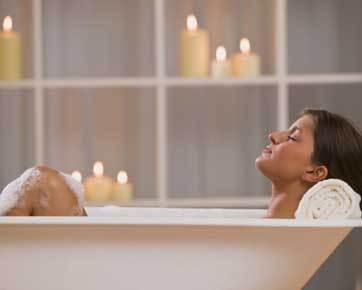 Mandi air hangat bisa menghilangkan stres setelah seharian sibuk bekerja. Menambahkan minyak esensial dalam bak mandi dapat meningkatkan relaksasi yang lebih.