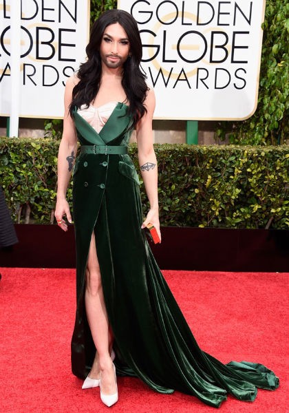 Selain melihat keanggunan selebriti tersebut, ada satu tamu yang juga menjadi pusat perhatian karena penampilannya yang berbeda dari yang lain. Adalah Conchita Wurst, penyanyi kontroversial yang tampil dengan brewok namun bergaya layaknya wanita.