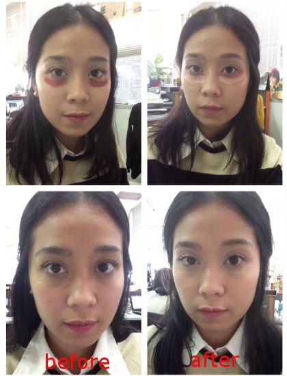Awalnya, Wolipop sempat ragu dengan hasilnya dan khawatir bila warna lipstiknya akan tetap jelas terlihat seperti noda. Tapi tak disangka, noda merah lipstik seolah menyatu sempurna dengan kulit dan warna gelap di lingkar mata berubah menjadi lebih cerah.
