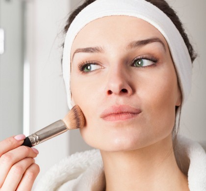 "Cara membaurkan bedak lebih enak menggunakan brush. Pakai brush bisa lebih menjangkau daerah-daerah yang sulit dijangkau jika menggunakan spons seperti bagian sisi hidung atau bawah mata sehingg minyak lebih menyerap dan hasil bedak tampak lebih alami," jelas Depi.