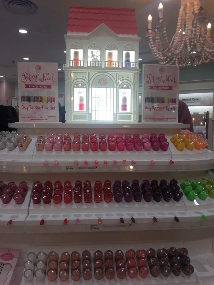 Salah satu konsep baru tersebut adalah Nail House, di mana para Princess --sebutan untuk pelanggan Etude House-- bisa merasakan pengalaman langsung mencoba berbagai macam produk cat kuku yang dihadirkan. Ada lebih dari 100 warna cat kuku mulai dari nuansa nude, oranye, merah, biru, hingga yang berglitter.