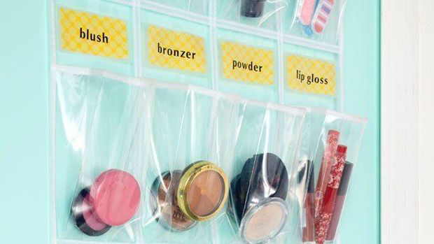 Apabila tidak ada tempat lagi untuk menaruh makeup, pintu bisa menjadi salah satu tempat 'tersembunyi' untuk meletakkan segala macam riasan Anda. Dengan 'menyulap' tempat penyimpanan sepatu yang terbuat dari plastik, Anda bisa menaruh makeup-makeup sesuai dengan kategorinya. Susunlah sesuai dengan brand, ukuran, warna, atau menurut selera Anda.