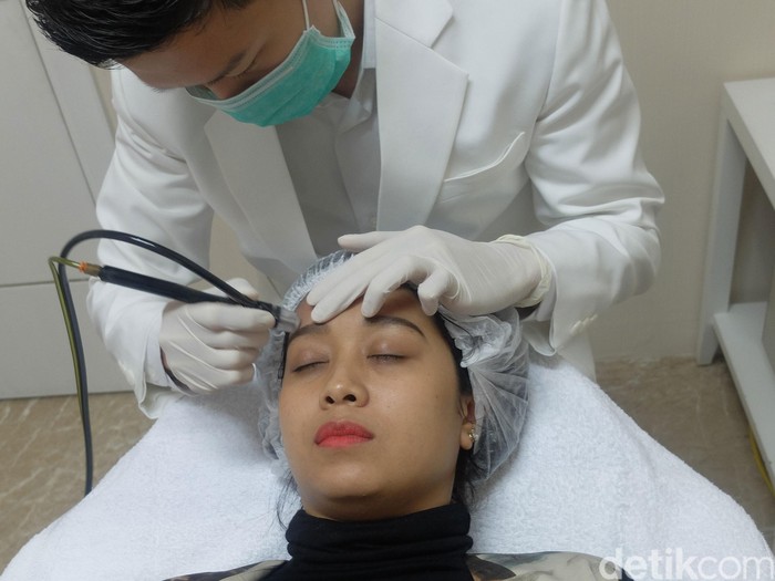 Pertama-tama, wajah dibersihkan oleh terapis. Setelah itu, facial dilakukan oleh dokter. Setelah mesin dinyalakan, facial pun dimulai.