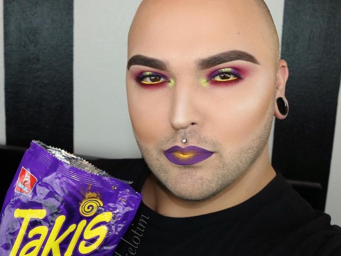 "Suatu hari aku merias wajahku sambil makan Hot Cheetos dan berpikir, 'Warna-warni ini akan terlihat bagus di wajahku!' Karena aku suka makeup mencolok, aku menerapkannya, mengunggahnya dan orang-orang menyukainya," ungkap Tim kepada Huffington Post.