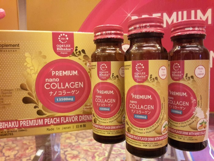 Seiring dengan majunya teknologi di bidang kecantikan, kolagen kini bisa dikonsumsi dengan cara diminum. Adalah Agelez Bihaku, brand suplemen kecantikan asal Jepang yang merilis produk minuman kolagen dari ikan salmon sebagai bahan dasarnya. Di dalamnya mengandung konsentrat sebesar 13.500 mg kolagen yang memiliki partikel nano sehingga mudah terserap oleh tubuh.