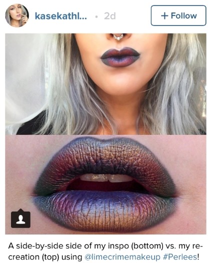 Seperti tren bibir yang disebut 'Oil Slick Lips', menggabungkan tiga hingga empat warna lipstik dengan nuansa metalik yang saat ini tengah 'booming' di Instagram. Para wanita tersebut mencampur lipstik ungu, biru atau abu-abu metalik.