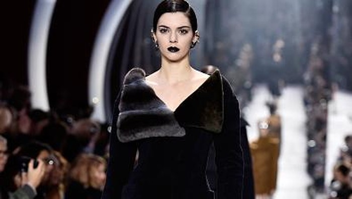 Kendall Jenner Tampil Dramatis dengan Lipstik Hitam di Fashion Show Dior
