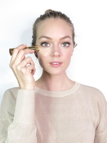 "Bentuk 'V' lebih berbaur dengan baik di kulit dan lebih terlihat natural dibanding membentuk foundation setengah bulatan," ujar Lindsay.
