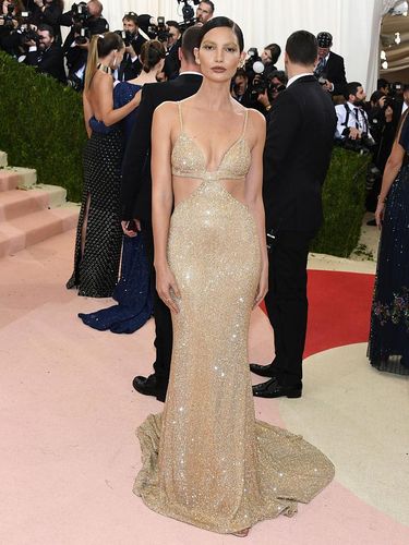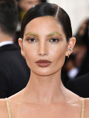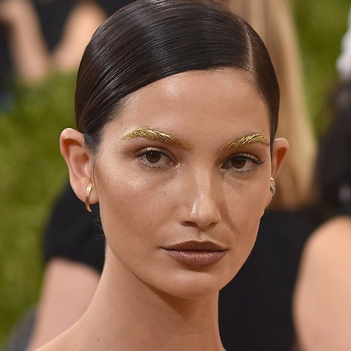 Lily Aldridge Tampil dengan Makeup Unik, Alis Warna Emas di Met Gala 2016