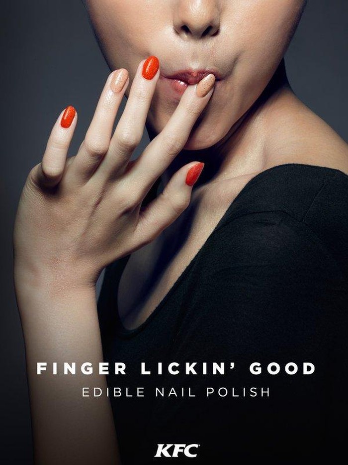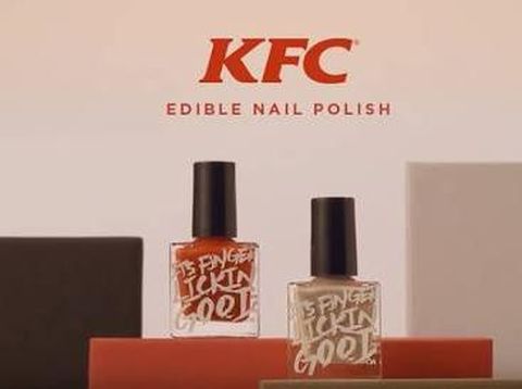 Kentucky Fried Chicken (KFC) Hong Kong baru saja merilis cat kuku yang diklaim aman dijilat atau dimakan. Tersedia dalam dua warna dan rasa, cat kuku dengan warna merah-oranye dan nude cream ini memiliki rasa ikonik khas ayam KFC: Original dan Hot and Spicy.