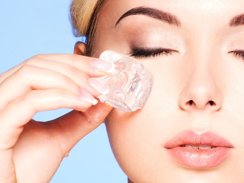 Ini adalah mitos yang salah. Mencuci wajah dengan air yang telah diberi es batu tidak memberikan efek cerah pada wajah, namun berfungsi untuk memberikan kesan glowy. Es batu lebih baik digunakan sebagai perawatan untuk kulit berjerawat. "Bakteri pada jerawat tidak suka dengan dingin. Sehingga Anda bisa menempatkan es batu di area wajah yang berjerawat. Es batu juga akan mengempiskan jerawat yang tengah meradang," ujar ahli kecantikan Dayle Breault.