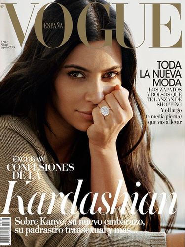 Meski sudah identik dengan wajah yang berpoleskan makeup contouring, bintang reality show ini rupanya tetap merasa percaya diri tampil makeup free di sampul majalah Vogue Spanyol edisi Agustus 2015.