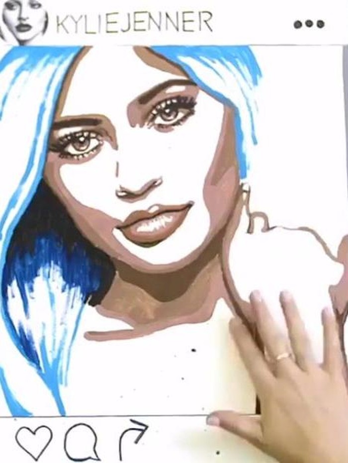 Dalam video singkat di Instagramnya, Jessie menunjukkan karya seninya tersebut. Uniknya ia membuat lukisan wajah Kylie Jenner yang sempat muncul di Instagram.